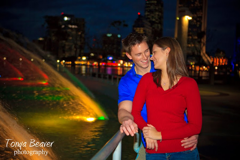 Matt proposed to Cindy downtown on New Years even night across the river from where we were. We shot some pics around the fountain, went over to their proposal spot, then came back for night time pics. These two are so cute are so much fun =)